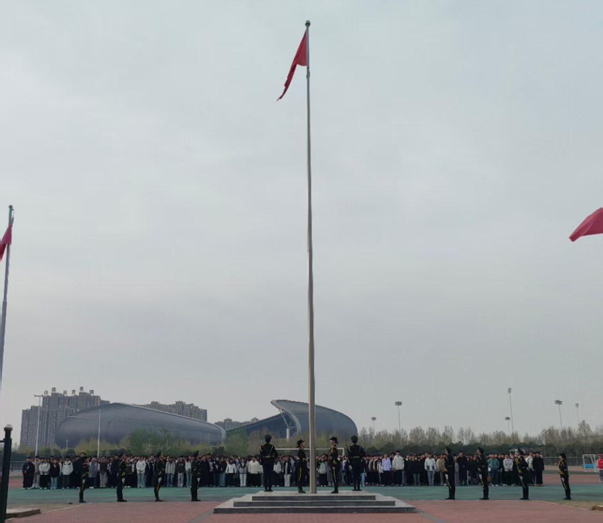 晨曦初照,国旗护卫队迈着整齐有力、铿锵坚定的步伐,护卫着鲜艳的五星红旗走向升旗台。在全体师生庄严肃穆的注目下,伴随着激昂雄壮的《义勇军进行曲》,五星红旗冉冉升起,迎风飘扬。全体师生面向国旗,庄严肃立,行注目礼,爱国之情在每个人心中油然而生。