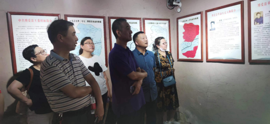 走进群山环抱的黄塘村,首先映入眼帘的是一座石头砌成的二层楼房,这里是中共博爱县工委旧址,也是博爱县的勤廉教育基地、红色教育基地。屋里四周悬挂着张璋、刘聚奎、刘甫成、蒋秀、赵桂英等革命历史人物简介。党员们站在照片前驻足观看,通过观看一幅幅珍贵的历史资料照片,进一步了解博爱县的革命历史,学习了革命历史人物的先进事迹,身临其境地感受了共产党人的初心和使命之源,思想政治接受洗礼。