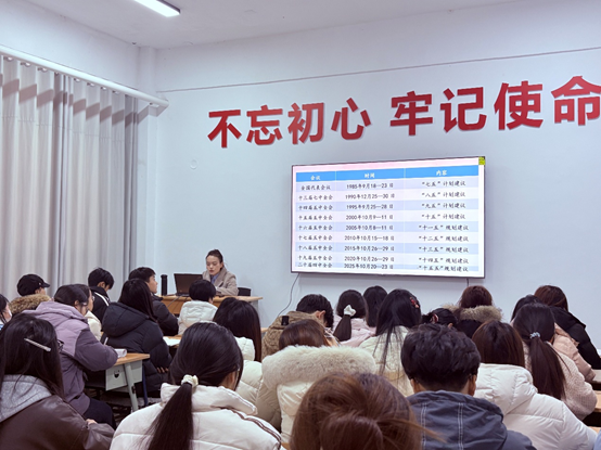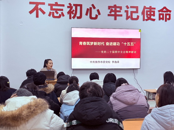 李逸柔老师以“青春筑梦新时代 奋进建功‘十五五’”为题深入解读了党的二十届四中全会精神,她从社会主义现代化建设阶段性特征切入,梳理了从“十五”到“十五五”规划建议的发展脉络,结合建党105周年、建军100周年节点,剖析了“十四五”发展历程与“十五五”发展意义。她还深入剖析了“十五五”国内外形势,阐释其总体部署的指导思想与基本原则,强调入党积极分子要在新时代国家发展中找准个人成长定位。