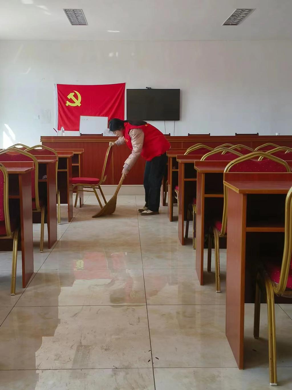 实践队员徐玉巧同学在河南省信阳市光山县社区党员活动室进行卫生打扫,在本次党员活动室卫生打扫志愿活动中,使她深刻体会到了党员的先锋模范作用和志愿服务的精神内涵。此次活动不仅为党员活动室营造了一个干净整洁的环境,,更让她在实践中感受到了党的宗旨和人民群众的期望。