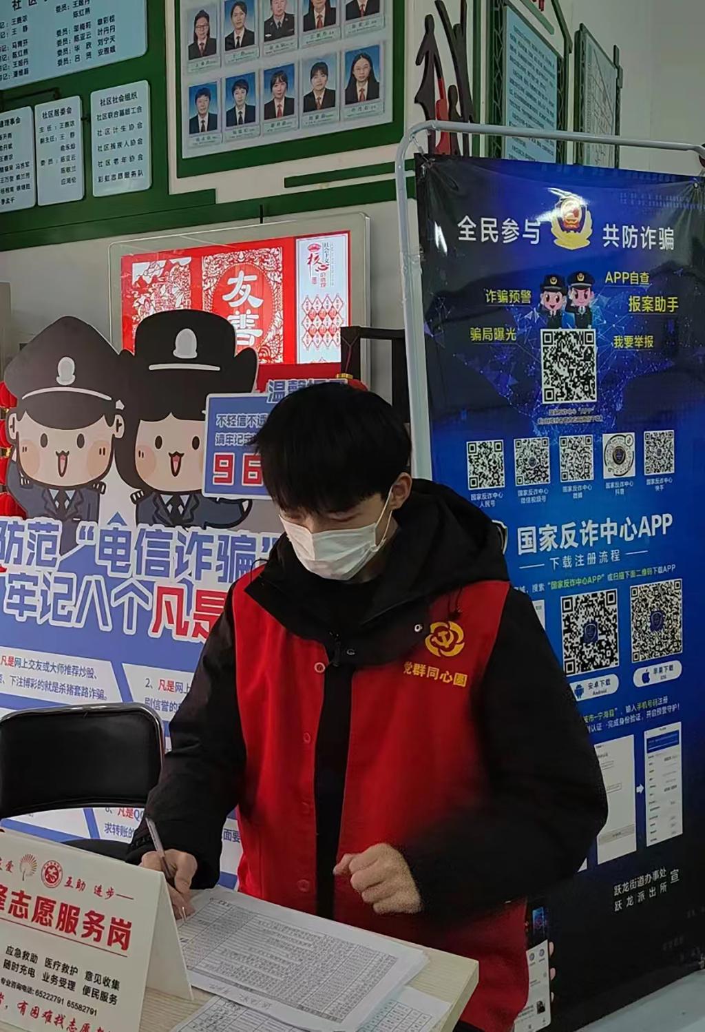实践队员周洲同学在河南省安阳市殷都区社区服务中心进行防诈宣传,当下网络诈骗猖獗,很多人容易被花言巧语所蒙蔽,导致遭受经济损失。在志愿活动中,周洲同学作为志愿者,向市民普及网络诈骗的相关知识,加强反诈宣传,提高社区成员的安全防范意识,防止不法分子的侵害,为维护人民群众的财产安全、营造更加和谐安全的社会环境而做出奋斗。